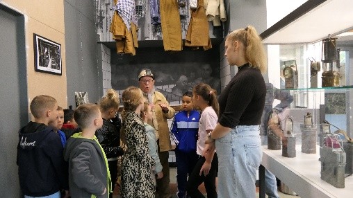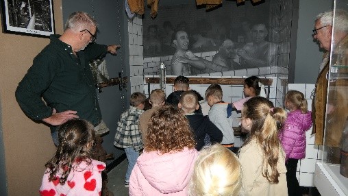 Basisschool Langeberg koos het ‘mijnverleden’ als thema voor de opening van het schooljaar 2025-2026. Op alle niveaus werden de kinderen meegenomen in de wereld van de mijnen en de mijnwerkers. Met attributen uit ons mijnmuseum kwamen zij voor het eerst in hun leven in aanraking met gerei dat door de mijnwerkers werd gebruikt. Hieruit volgden schattige maaksels van papier, zoals mijnlampen, koelpungels en helmen. Als afsluiting van het project maakten alle kinderen een wandeling, met knapzak/koelpungel, langs enkele markante punten waar het mijnverleden in Brunssum nog te zien is zoals het schachtwiel aan het bodemplein. Eindpunt van de wandeling was het mijnmuseum waar de kinderen in groepen werden ontvangen. Na een spannende uitleg over wat er allemaal in de mijn gebeurde, werd elke groep door Marco Arets op de foto gezet voor de mijnwagens op de speelplaats. Volgens Fabien Jadoul, hoofd van de school, kwamen de kinderen ‘onder de indruk’ met enthousiaste verhalen terug op school. Grote dank aan Giel de Vos, Frans Cals, Toon Buchmeyer, Peter Droomers, Carin van Dijk en Marco Arets, die op voortreffelijke wijze de kinderen wisten te boeien.